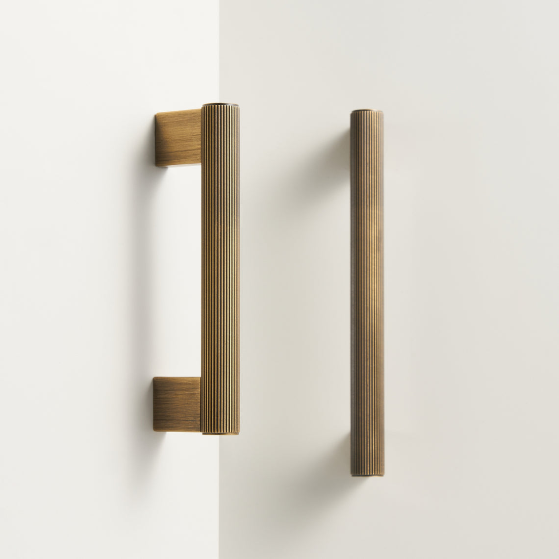 Give your furniture or kitchen cabinets an elegant and modern touch with these handles made from solid brass with an antique finish. The knurled surface provides a firm grip and adds extra character to the room. These handles are perfect for those seeking a timeless design with an exclusive feel.