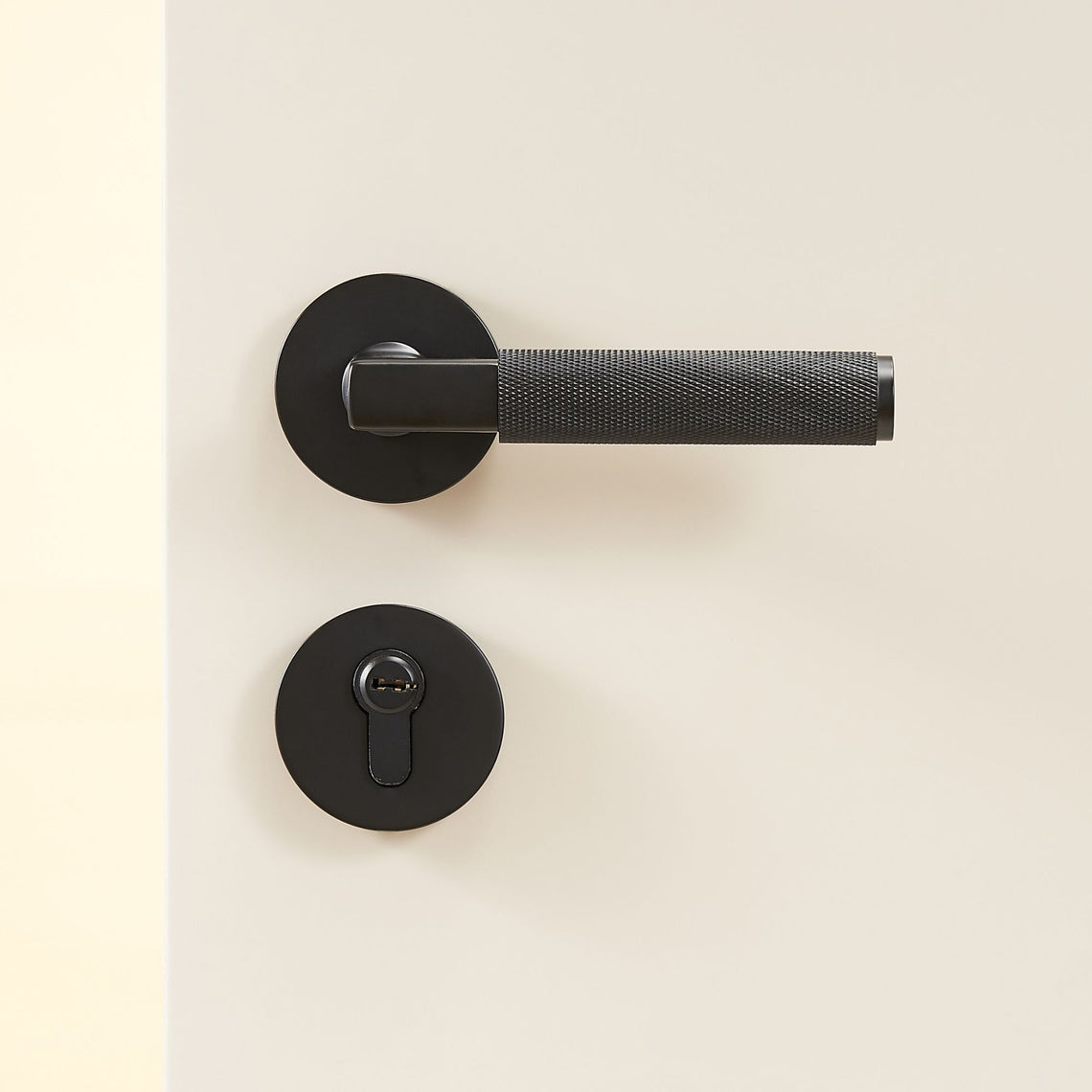 This matte black door handle for interior doors is made of solid brass. The grip surface has a knurled texture that adds character and contributes to a modern look in your home. Feel free to combine it with fittings or knobs from our other series to complete the look in your home.