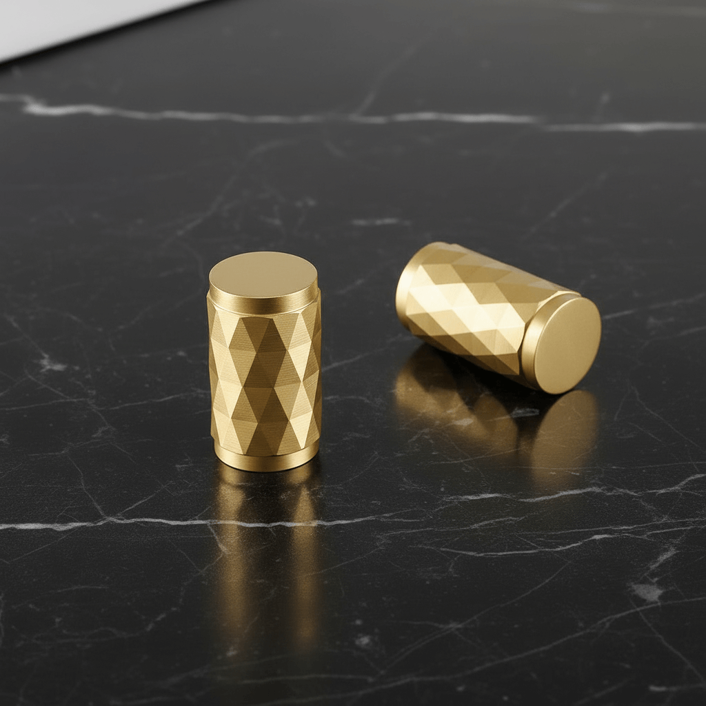Knop van massief messing met een elegante diamantslijpvorm, perfect als enkele detail op meubels of gecombineerd met andere handgrepen op keukenkastjes en kasten. Verkrijgbaar in drie stijlvolle uitvoeringen om te voldoen aan verschillende interieurstijlen en behoeften.
