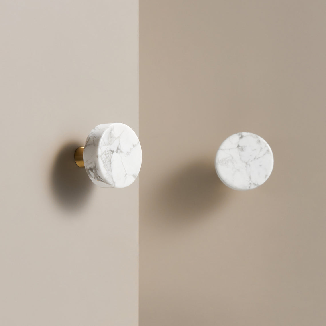 Verleihen Sie Ihrer Einrichtung mit diesem eleganten Knopf aus Marmor und massiver Messingbefestigung einen luxuriösen Touch. Der Knopf vereint die natürliche Schönheit des weißen Marmors mit dem warmen Glanz von Messing und schafft so ein... Mehr lesen