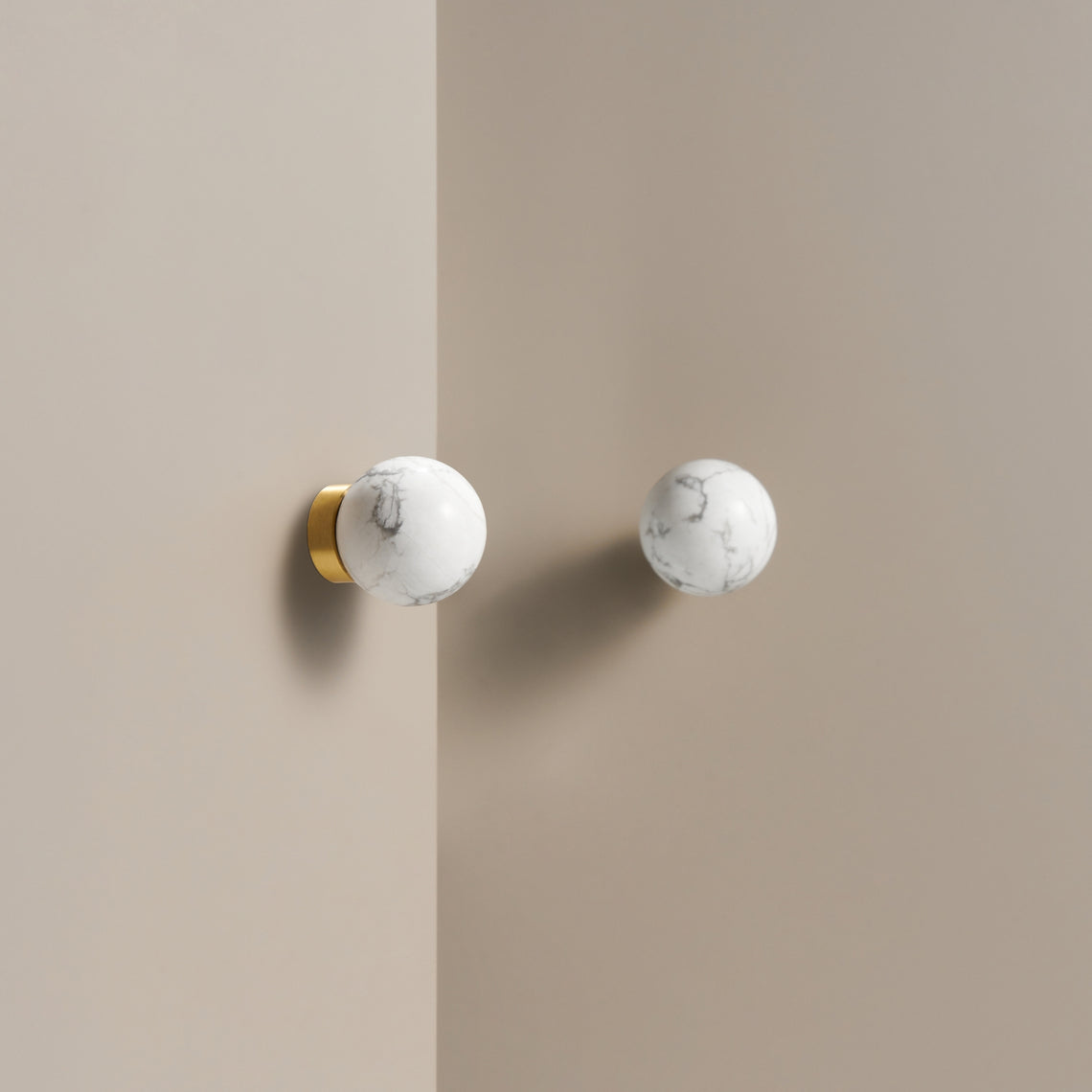 Verleihen Sie Ihrer Einrichtung einen edlen Akzent mit diesem runden Knopf aus elegantem Marmor und massivem Messing. Die Kombination der glatten Marmoroberfläche mit den warmen Tönen des Messings schafft eine elegante Balance zwischen natürlicher Schönheit und Luxus. Ein moderner und stilvoller Akzent für Möbel oder Küchenschränke, der sowohl Funktionalität als auch Ästhetik bietet.